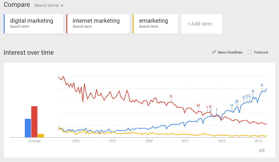 This naming reflects these trends in use of the terms shown by Google Trends - here shown in the latest June 2015 update to Google Trends.