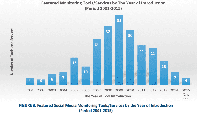 It seems the choice now is even more bewildering. A November 2015 comparison of social media monitoring tools by Ideya Ltd shows that there are at least 242 tools now available. However, the number of new tools has decreased. Of these sevices, 187 are paid, with the remainder free or using a combined model.