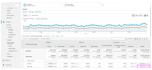 We all know that SEO is great for introducing your brand to new customers that are interested in your product. Attracting new consumers and growing your customer base doesn't come easy and looking at the revenue driven by new visitors is a nice metric to give value to this work. If you have year on year data to compare against, this data will create the most accurate representation of business growth.