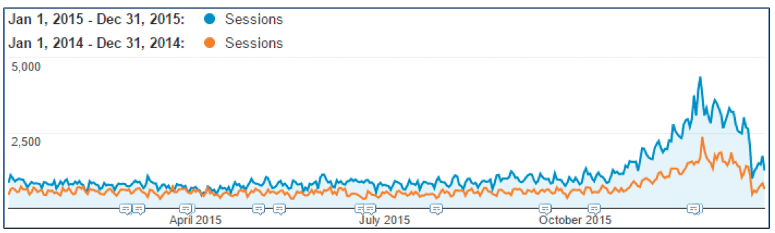 Snapshot of organic traffic over time. Google Analytics